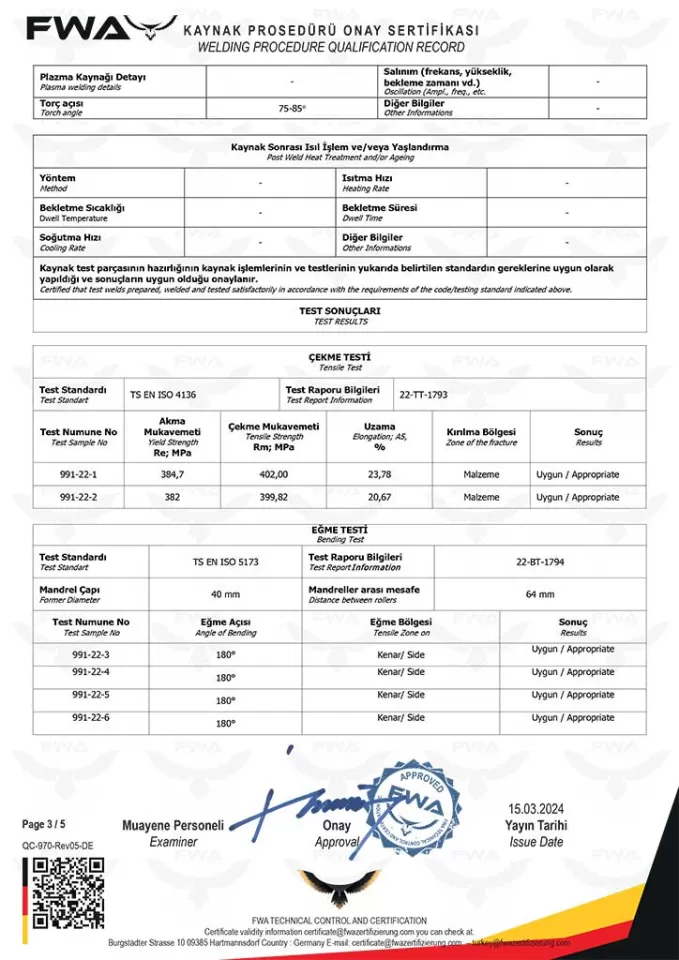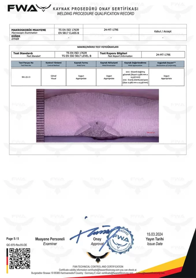 Süreçlerimizi uluslararası standartlar ve yönetmelikler doğrultusunda yapılandırarak, verimliliği artıracak araç ve teknolojiler ile desteklemekteyiz. Bu sayede hizmet kalitemizi sürekli olarak yükseltiyoruz. Üretim öncesi ve sonrasında gerçekleştirilen muayene ve deneylerle birlikte, proses içi kontroller sayesinde oluşabilecek hataların önlenmesini amaçlamaktayız.
