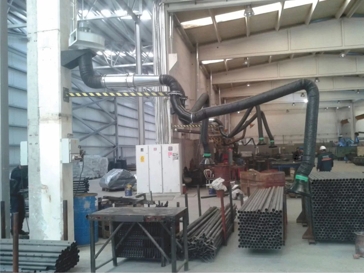 Uzatma bomları, akrobat kollar veya hortum makaraları gibi diğer egzoz emiş sistemlerinin duvardan veya montaj noktasından uzak bölgelere ulaşmasını sağlar. Bomların duvar montaj desteği üst ve alt çıkış ağızları, fan veya kanal bağlantısı için hazırdır. Uzatma kirişleri sabit veya mafsallı olarak, profil kaynaklı olarak imal edilmiştir. Tüm bomlar standart olarak Treng akrobat kolların bağlanacağı montaj adaptörü ile birlikte verilmektedir. Çift mafsallı uzatma bomları, ortadan ilave bir mafsalla donatılmış olup, bu sayede geriye ve köşe noktalara erişim sağlanır. Bom üzerindeki kanal içinde herhangi bir mekanizma bulunmamaktadır, bu da düşük hava direnci ve düşük gürültü düzeyi sağlar.