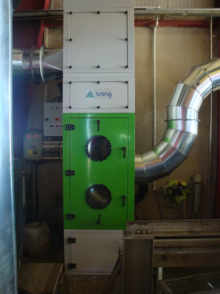 Ünite giriş ağzından emilen duman, toz ve partiküller filtre hücresine yönlendirilir. Filtre bölümünde bulunan yüksek verimli kartuş filtre elemanları dış yüzeylerinde partikülleri tutar. Filtre kirlilik sensöründen gelen sinyalle otomatik temizleme sistemi devreye girer ve kartuşları yüksek basınçlı hava jeti ile temizler. Temizlenen toz ve partiküller ünitenin alt kısmında bulunan biriktirme kovasında toplanır.