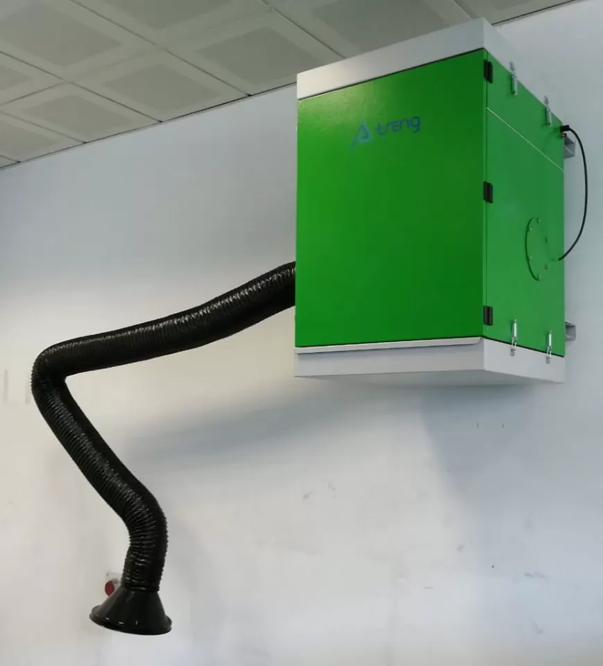 Atölye içinde duvar veya kolona montajı yapılarak yer tasarrufu sağlar. Kollar aracılığıyla emilen hava %99'un üzerinde duman ve partikülden arındırılarak tekrar ortama verilir. Kaynak dumanı filtre sınıfı W3 olup, yüksek alaşımlı çeliklerin kaynatılması güvenlik gereksinimlerini karşılamaktadır.